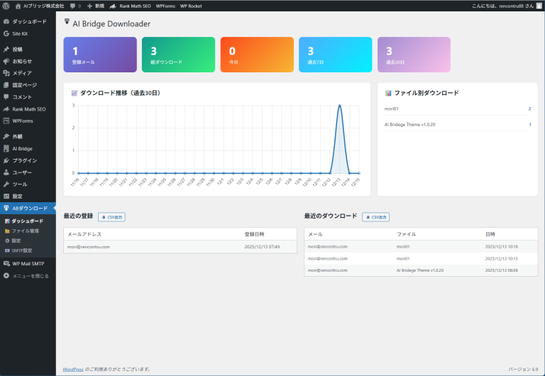 【無料配布】AI Bridge Downloader – メール認証付きダウンロードプラグイン